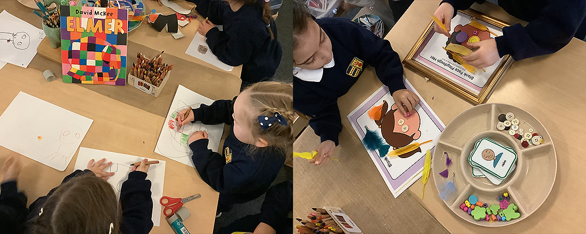 For the last couple of weeks, our mystery text has been Elmer by David McKee – a beloved story that immediately captured the children’s attention, with many exclaiming how excited they were to see the patchwork elephant. Through this familiar tale, the children have been developing key reading skills such as prediction, inference, and making personal connections. The story has also sparked thoughtful discussions about what makes each of us unique. It continues to be a joyful and meaningful way to combine literacy with personal and social learning.