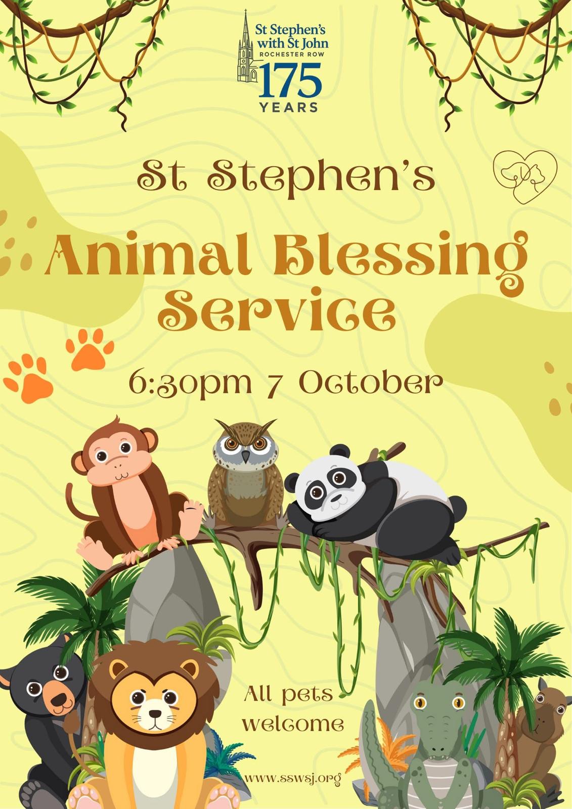 - Tuesday 7th Oct: Blessing of the Animals Service at St. Stephens Church from 18;30 – 19:15, all families and pets warmly welcomed to attend their wonderful service.