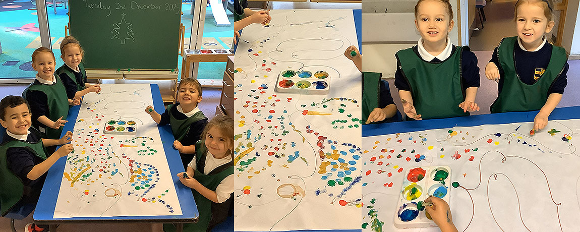 With it being the first week of December, Nursery were excited to jump straight into the festive spirit! At the art table, the children enjoyed decorating colourful Christmas lights, dipping their pom-poms into paint to add bright, festive patterns. They explored different textures and colours, all while strengthening their fine-motor skills. We’re looking forward to even more festive crafts and Christmas activities as we head further into December!