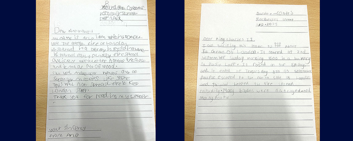Year 2 have been very busy Historians stepping back in time to 1666 as part of our topic on The Great Fire of London! After learning how the fire started in a bakery on Pudding Lane and how it spread so quickly through the wooden houses, the children put themselves in the shoes of Londoners from the past. This week, they wrote letters to King Charles II , explaining what happened during the fire, how it began, and how people tried to stop it. The children used fantastic descriptive language to bring the events to life. Well done Year 2!