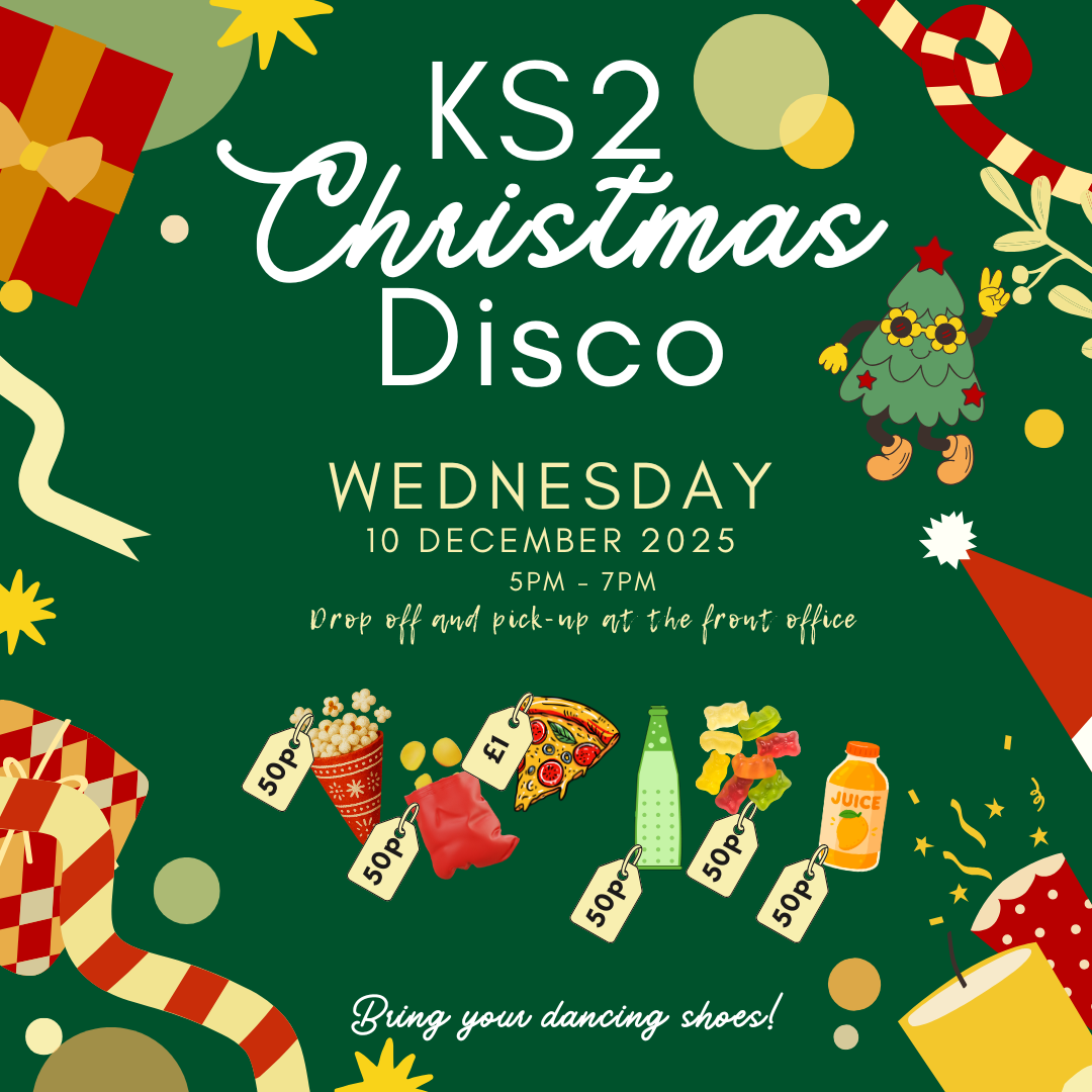 - KS2 (Years 3 – 6) School Disco: 10th December 17:00 – 19:00(more information to follow)