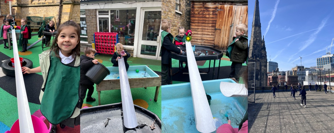What a wonderful start to the term Reception have had! We’ve been making the most of the beautiful sunny weather by taking our learning outdoors, where the children have loved exploring water play. They have been experimenting with transporting water using pipes and connectors, working together to problem-solve, test their ideas, and create systems that successfully carry water from one place to another. There has been lots of teamwork, perseverance, and excitement as they adjusted and improved their designs. We also enjoyed our very first visit to the roof, where the children played games in the sunshine and took time to look at the world around us from a new perspective, spotting builders at work and noticing what was happening beyond our usual view. It’s been a fantastic first week back and a lovely start to the term ahead!