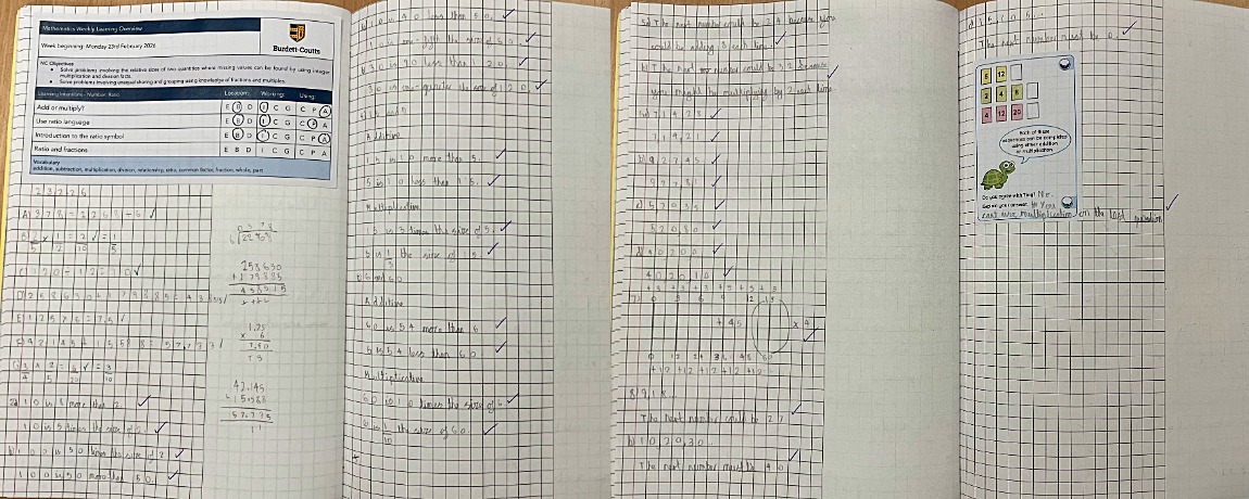 As Mathematicians this week, Year 6 children have begun their new unit on Ratio, exploring how relationships between numbers can be expressed additively and multiplicatively. They investigated how numbers can be linked through addition (e.g. 3 + 6 = 9) or multiplication (3 × 3 = 9), using double number lines to identify and describe these connections, including inverse relationships such as subtraction and division. Pupils were then introduced to ratio as a way of showing multiplicative relationships between two quantities. Using practical resources such as counters and diagrams, they described comparisons in words – for example, “For every 2 red counters, there are 3 blue counters”- before learning to write ratios using the colon symbol (2 : 3). They explored how ratios can be simplified by dividing by common factors and recognised that the same ratio can be written in different forms, such as 4 : 6 being equivalent to 2 : 3. Finally, the class examined the similarities and differences between ratios and fractions, understanding that ratios compare parts to each other, while fractions compare parts to the whole.