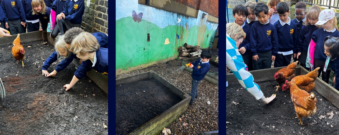 This week in Science, Year 1 have been learning all about planting and how things grow.We carefully planted rhubarb, potatoes and wildflowers, learning about what plants need to grow and why patience is such an important part of being a gardener. The wildflowers we chose will encourage insects and help support our local ecosystem — we are already thinking like real scientists! Our school chickens — Nutmeg, Cinnamon and Nugget — were very excited to see us working in their garden. They supervised closely (and very curiously) while we prepared the soil and planted our crops. Now comes the exciting part… waiting, observing and recording what happens next. We cannot wait to see the first signs of growth and watch our garden come to life over the coming weeks.