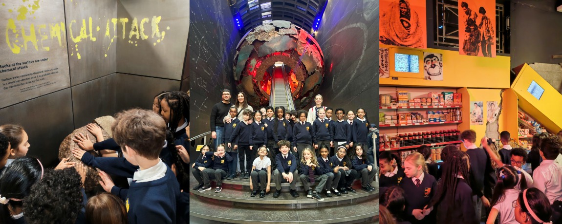 Year 3’s trip to the Natural History Museum week was so much fun! First the children watched a show about earthquakes and volcanoes, which they had an existing wealth of knowledge about and so were able to answer many of the questions. After that, they explored the gem gallery and rock exhibition (related to our current science topic), and the earthquake exhibition. They also stood inside the model of a shop, which moved as if a small earthquake was happening. It was a great day consolidating learning and exploring new things too.