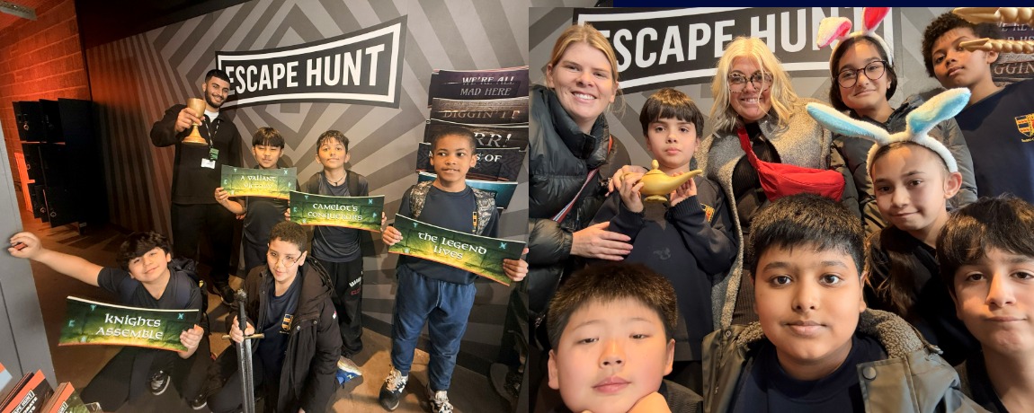 Year 5 had a fantastic day celebrating their learning with an exciting trip to Escape Hunt! We started the day full of excitement as we travelled by train to Woking. Once we arrived, we spent some time playing in the park and enjoying our lunch together before walking to the Escape Hunt venue.