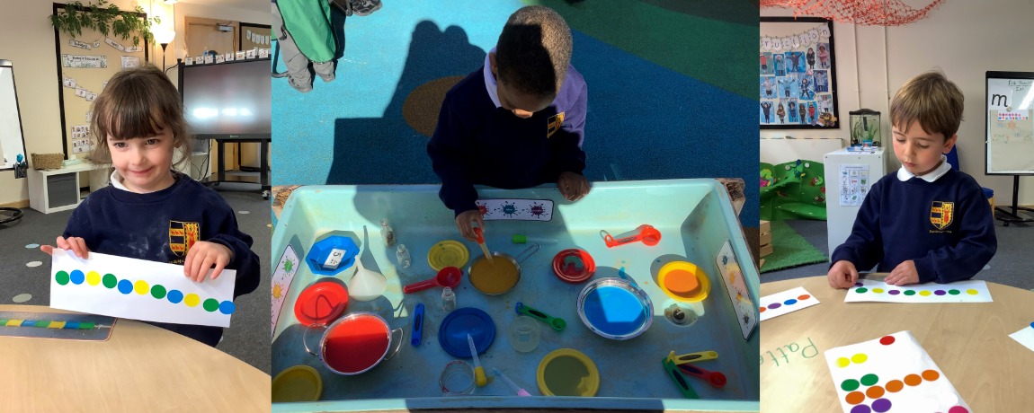 Nursery have had alovely start to the term, with all children settling back into school really well. We have enjoyed welcoming some new friends into our nursery classroom, and it has been wonderful to see them beginning to settle in, explore their new surroundings and build new relationships. We have taken part in a range of hands-on activities and one of our main focuses has been learning about primary colours. The children have been learning to recognise and name the primary colours: red, blue and yellow. They have also been experimenting with mixing these colours to see how new colours can be created, helping them to develop their understanding of how colours change and combine. We have also revisited patterns, focusing on what makes a pattern and how it repeats. The children explored simple repeating patterns and then created their own using coloured sticker dots. This has helped to build their understanding of pattern as well as giving them the opportunity to practise their fine motor skills.