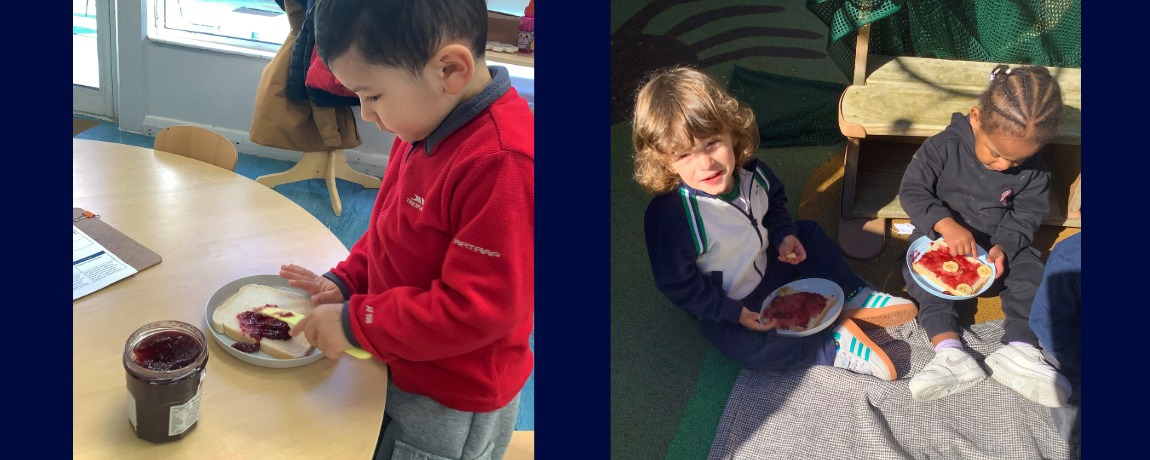 This week, Perschool enjoyed making teddy bear toast as part of our core text We’re Going on a Bear Hunt. During the activity, we talked about different body parts, identifying features such as two eyes and one nose. The children further developed their fine motor skills as they carefully spread toppings and created their own bear faces on the bread. It was a fun and engaging way to combine storytelling, creativity, and hands-on learning!